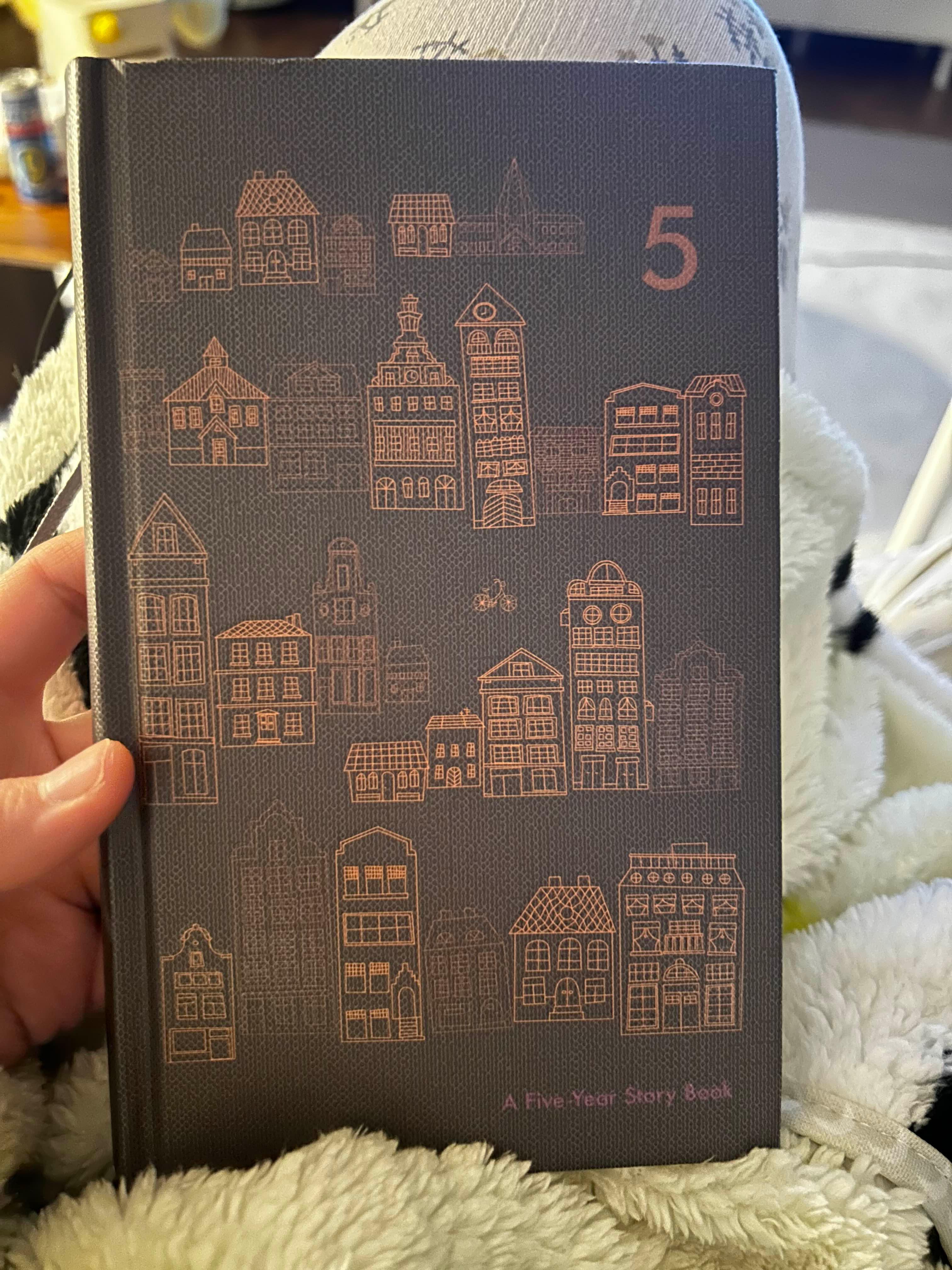 맨 위에는 날짜가 적혀져 있고, 그날 하루의 몇 줄을 5년 동안 같은 날짜는 같은 페이지에 적어서 작년엔 나의 생각이 어땠지? 재작년엔 어땠지?를 확인하면서 적을 수 있다는 게 되게 좋은 취지인 거 같아요 :)