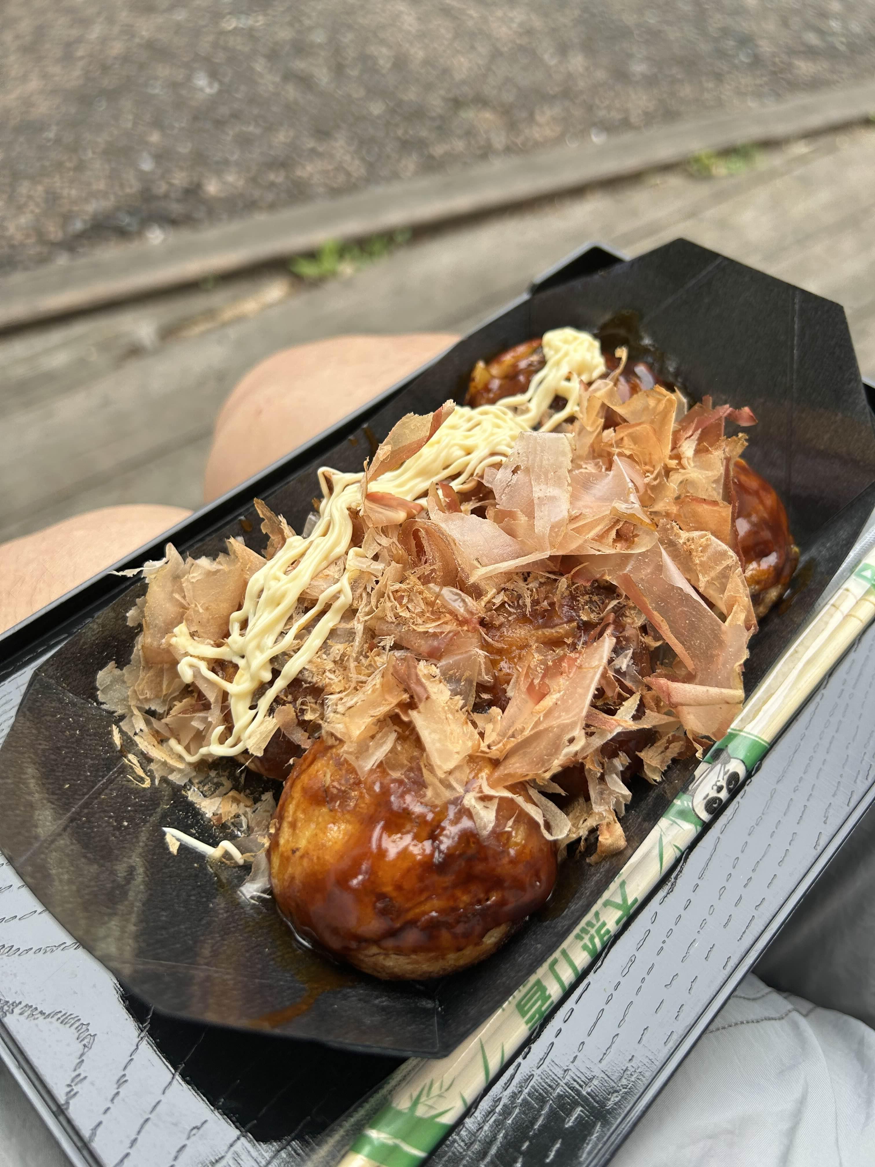 까마귀가 머리 위에서 내 타코야끼를 노려는 게 너무 무서웠지만, 맛있었다. 파가 위에 뿌려져 있는 걸 먹을걸.. 아쉬웠다.