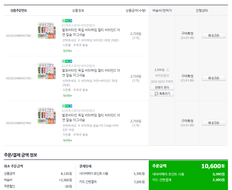 아래는 네이버페이를 통해서 구매한 내돈내산 인증이에요.