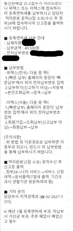 - 위의 방법으로 납부를 하지 않으면 이중 부과되니 꼭 위택스, 이택스에서 납부해주세요