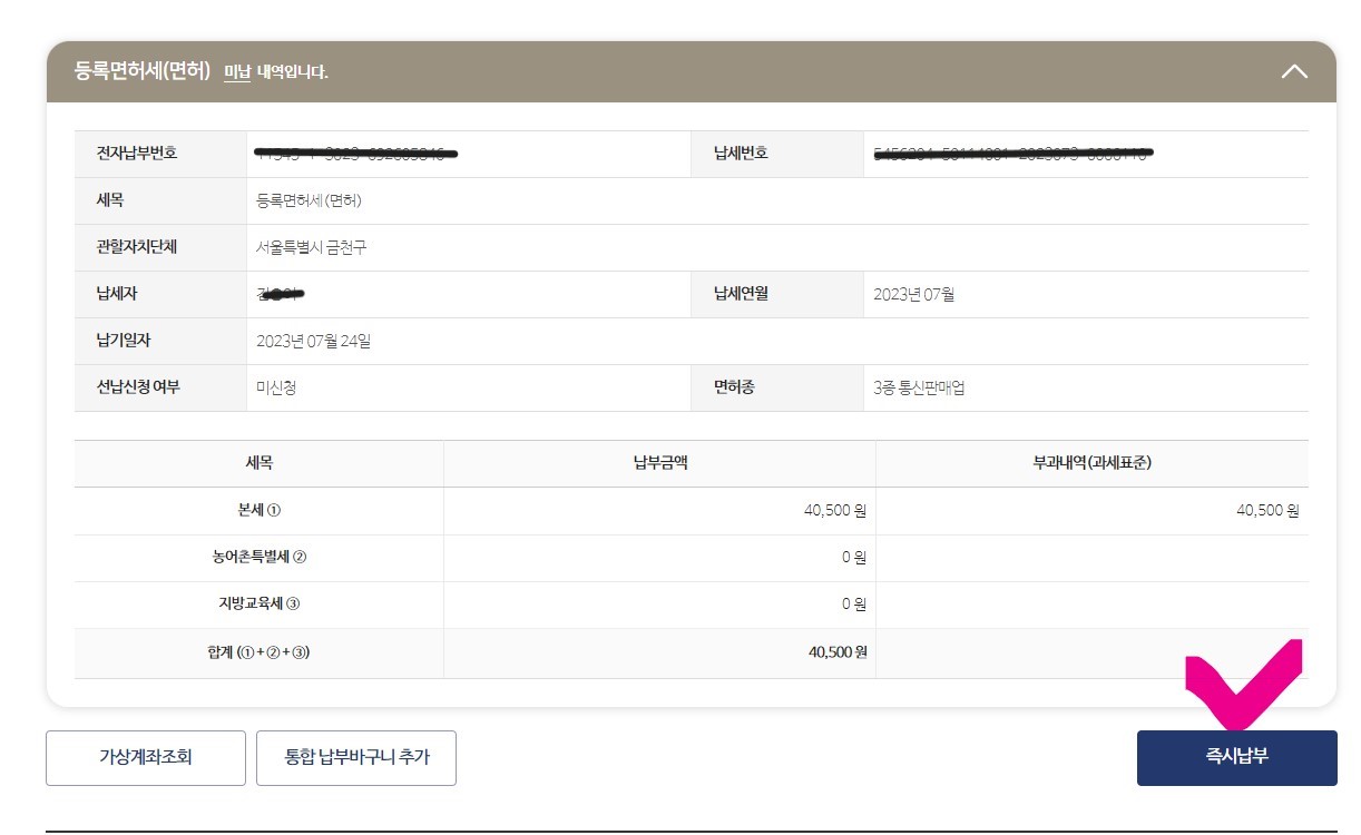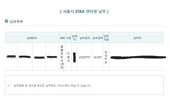 ④ 납부 방법 선택해서 결제하면 아래와 같은 화면이 나타남 -> 끝